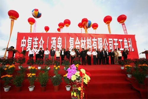 甘肅省委副書(shū)記、省長(cháng)徐守盛,甘肅省委常委、常務(wù)副省長(cháng)馮健身,中國建材集團董事局主席宋志平,酒泉市委書(shū)記、市人大常委會(huì )主任李建華,酒泉市人民政府市長(cháng)陳春明,中國復合材料集團公司董事長(cháng)、總經(jīng)理張定金,中國建材報社社長(cháng)、總編輯陳才來(lái),中國建材雜志社長(cháng)秦春雨、中國建材股份公司副總工解小平等出席儀式。中國復合材料集團公司副總經(jīng)理、連云港中復連眾集團公司董事長(cháng)任桂芳主持儀式。