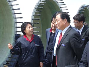2007年4月16日,山東省威海市黨政代表團在市長(cháng)劉永忠的陪同下來(lái)中復連眾公司考察工作。