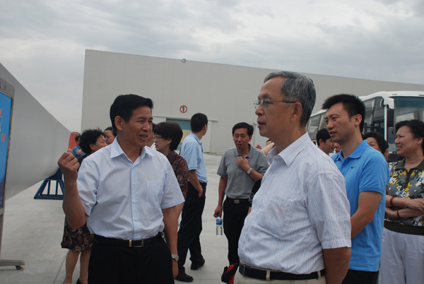 7月15-16日,中國建材聯(lián)合會(huì )四屆七次會(huì )長(cháng)全體會(huì )議在甘肅酒泉召開(kāi)。會(huì )議期間,中國建筑材料聯(lián)合會(huì )會(huì )長(cháng)張人為、國務(wù)院國有資產(chǎn)監督管理委員會(huì )國有大型企業(yè)監事會(huì )原主席喬龍德、中國建材集團董事長(cháng)宋志平及其他與會(huì )代表視察了中復連眾風(fēng)機葉片外埠生產(chǎn)基地之一—中復連眾(酒泉)公司。中國復材集團董事長(cháng)、總經(jīng)理張定金陪同考察。
