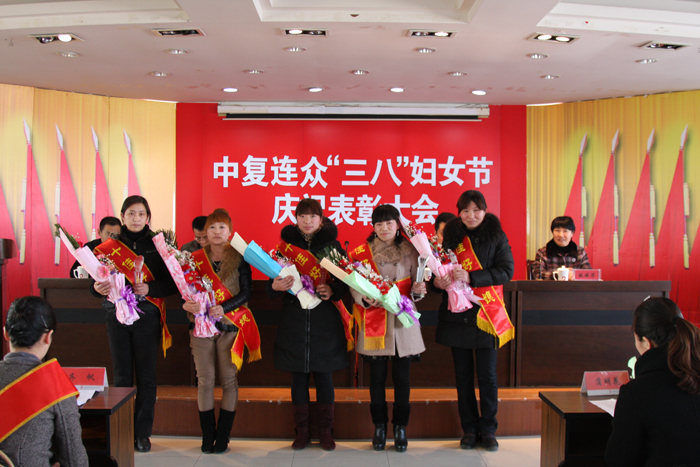 3月7日下午,五樓會(huì )議室里鮮花簇擁、春意融融,中復連眾隆重舉行“三八節”慶祝表彰大會(huì ),授予二十位女職工“十佳好兒媳”、“十佳賢內助”稱(chēng)號。