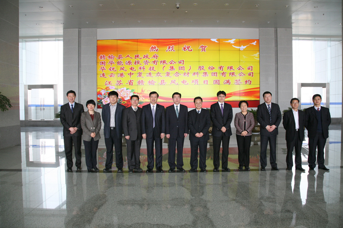 4月6日,由贛榆縣人民政府、國華能源投資有限公司、華銳風(fēng)電科技股份有限公司、連云港中復連眾復合材料集團有限公司四方共同協(xié)商合作的江蘇省贛榆縣風(fēng)電項目簽約儀式在贛榆縣舉行。連云港市政協(xié)副主席徐曄宇;國華能源投資公司黨委書(shū)記、副總經(jīng)理桂凱;華銳風(fēng)電科技股份有限公司董事長(cháng)韓俊良;中國復合材料集團有限公司董事長(cháng)、總經(jīng)理張定金;中復連眾董事長(cháng)任桂芳以及贛榆縣委縣政府相關(guān)領(lǐng)導等出席了簽字儀式。
