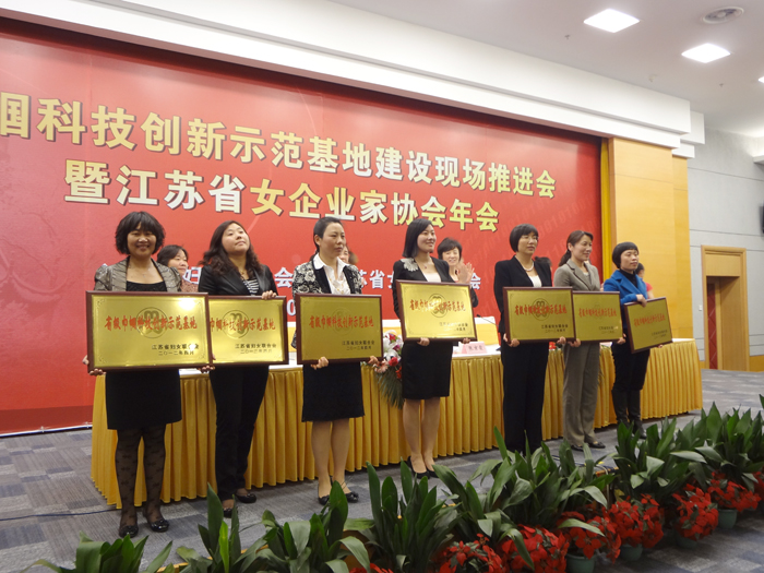 4月23—24日,由江蘇省婦聯(lián)、省女企業(yè)家協(xié)會(huì )聯(lián)合召開(kāi)的巾幗科技創(chuàng )新示范基地建設現場(chǎng)推進(jìn)會(huì )暨省女企業(yè)家協(xié)會(huì )年會(huì )在蘇州隆重召開(kāi),會(huì )上對首批13個(gè)巾幗科技創(chuàng )新示范基地獲得授牌,中復連眾獲此殊榮,由此成為連云港市首批唯一獲批的江蘇省巾幗科技創(chuàng )新示范基地。