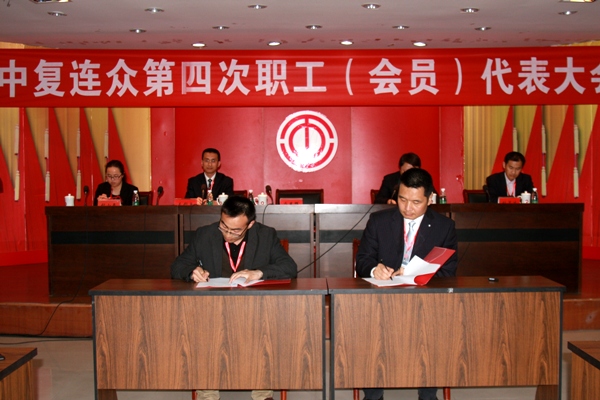 大會(huì )采取無(wú)記名投票的形式,選舉產(chǎn)生了中復連眾第四屆工會(huì )委員會(huì )成員,王彤兵等11名同志光榮當選,新一屆工會(huì )委員會(huì )與公司簽署了2014年度集體合同及三個(gè)專(zhuān)項合同。