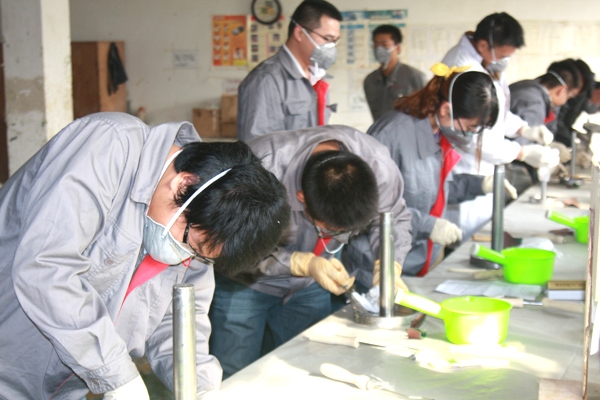 從模具的打磨,到材料的裁剪、樹(shù)脂的量取,都由參與考核者自己進(jìn)行。管罐事業(yè)部參賽的科技人員實(shí)際操作技能較為熟練,各道工序進(jìn)行的有條不紊,速度也較快,制作的成品都符合考核要求;葉片事業(yè)部的科技人員,有的對法蘭的制作工藝不是很了解,制作起來(lái)有一定難度,但他們憑借扎實(shí)的葉片制作工藝的功底,最終交出了一份圓滿(mǎn)的答卷。